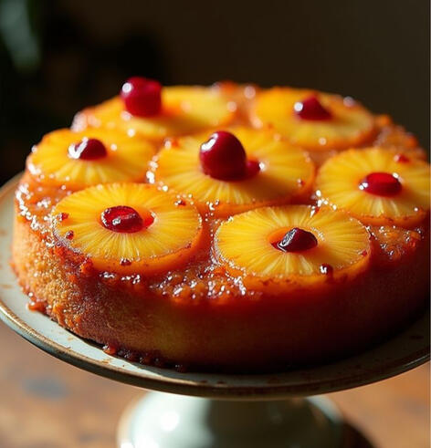 A sweet and fluffy cake filled with chunks of pineapple, drizzled with icing, and topped with cherries. One of the few things Ashai brought back with him on his visit to Tural.